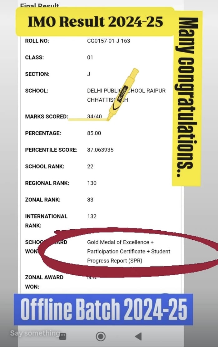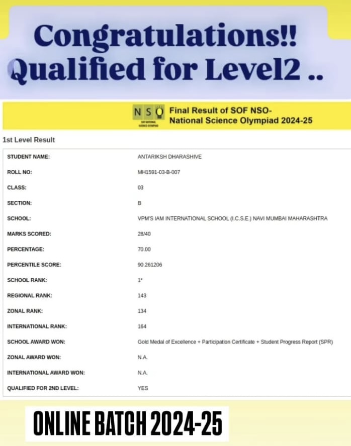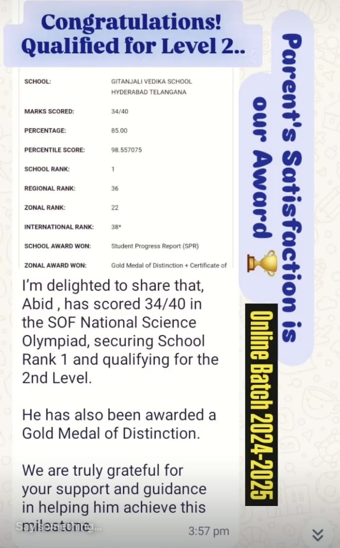 "The way ma'am explains complex science topics makes them so easy to understand. I secured a gold medal in NSO after her guidance!"