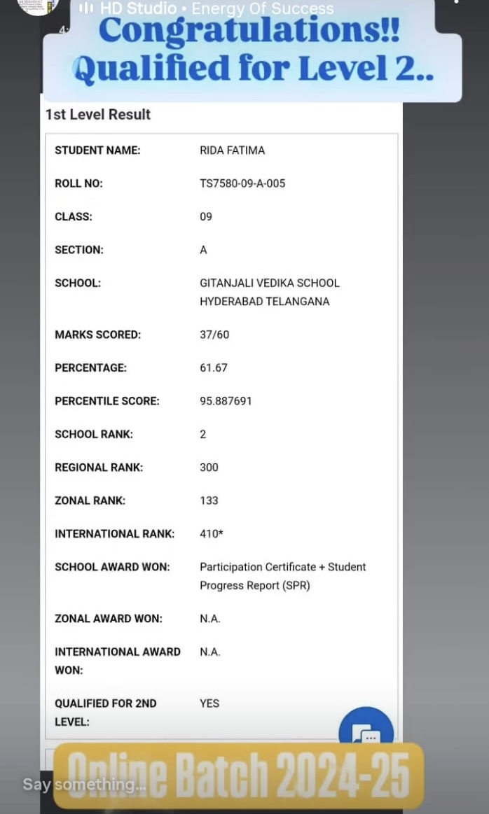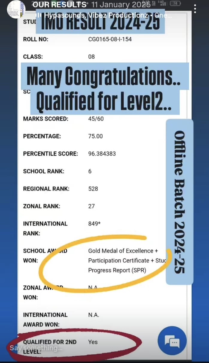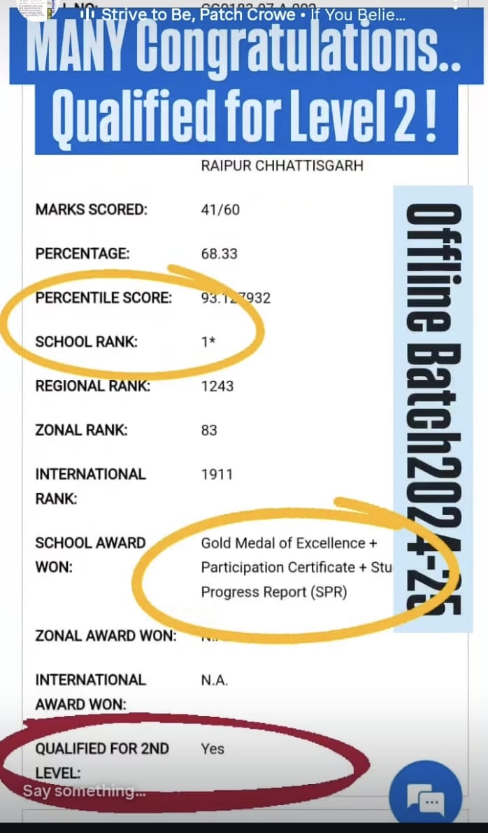 Our students consistently qualify for Olympiad Level 2, achieve top ranks, and win gold medals.